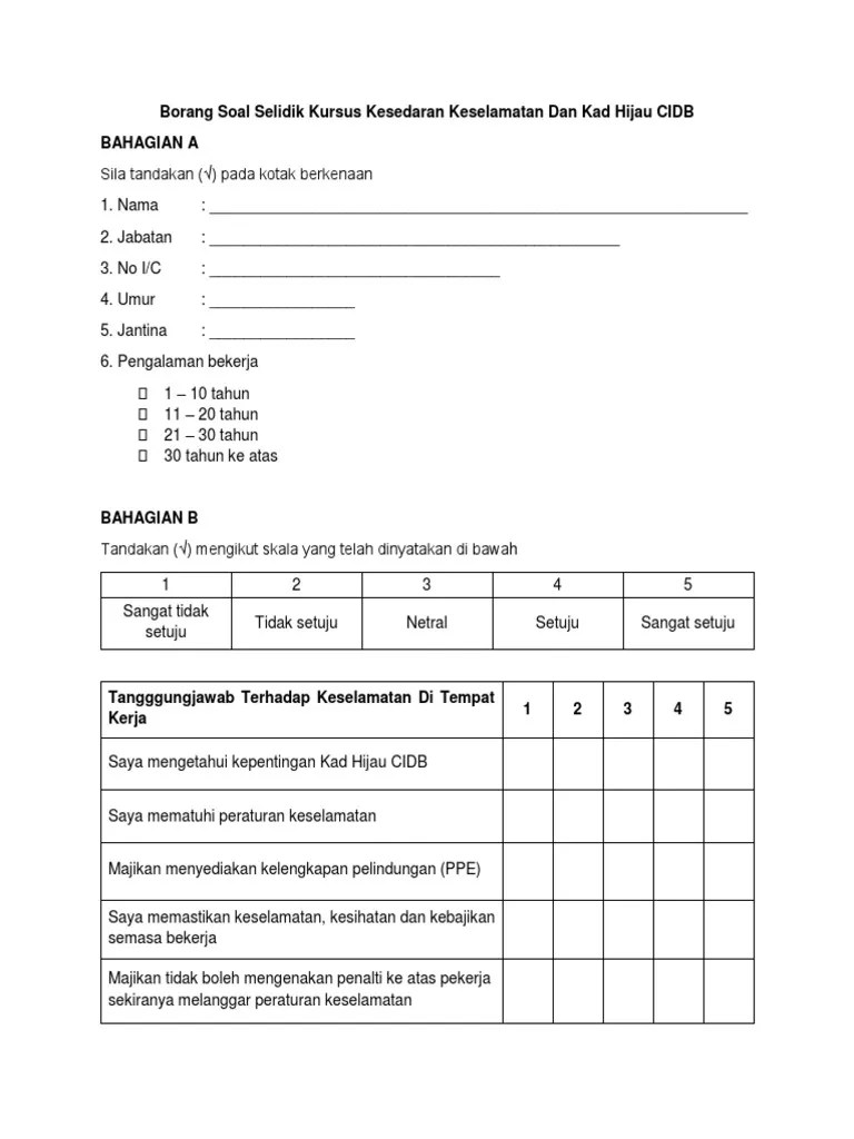 Related : Borang Soal Selidik Keselamatan Di Tempat Kerja - [sila tandakan (/) atau isi tempat kosong pada ruan..