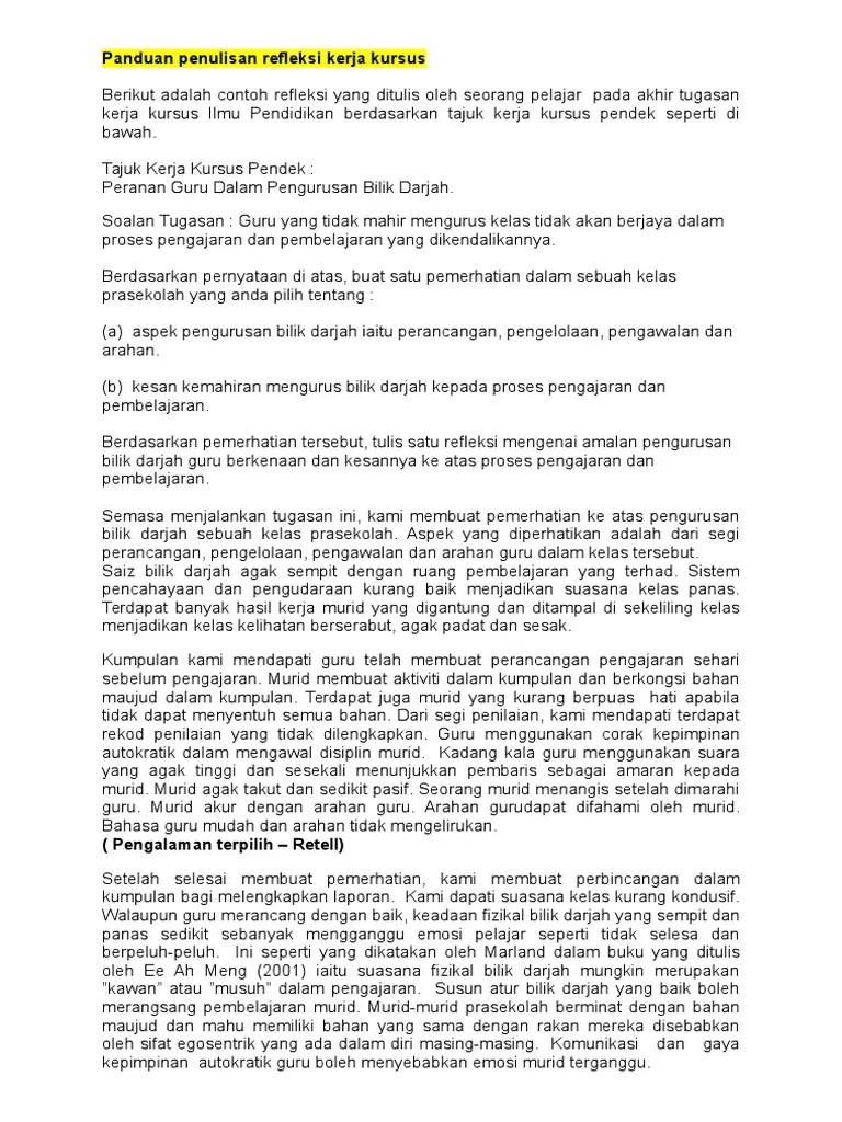 Contoh jurnal refleksi melakukan refleksi tentang proses pembelajaran yang dialami selama pelatihan dan menuliskannya dalam jurnal reflektif. Baiklah, perkongsian kali ini sekadar pengalaman saya. Jadi, ini adalah refleksi yang saya buat pada akhir setiap pdpr. Dilatasi contoh soal dilatasi introduction kejutan berhadiah matematika 1 uncategorized. Contoh rph prasekolah (bahasa inggeris) 1.