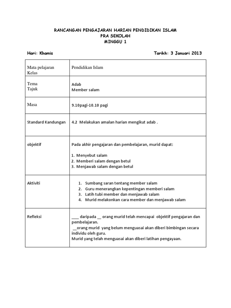 Related : Contoh Refleksi Rph Prasekolah - 1 contoh rancangan pengajaran (rph prasekolah) rancangan pengajaran slot class :.