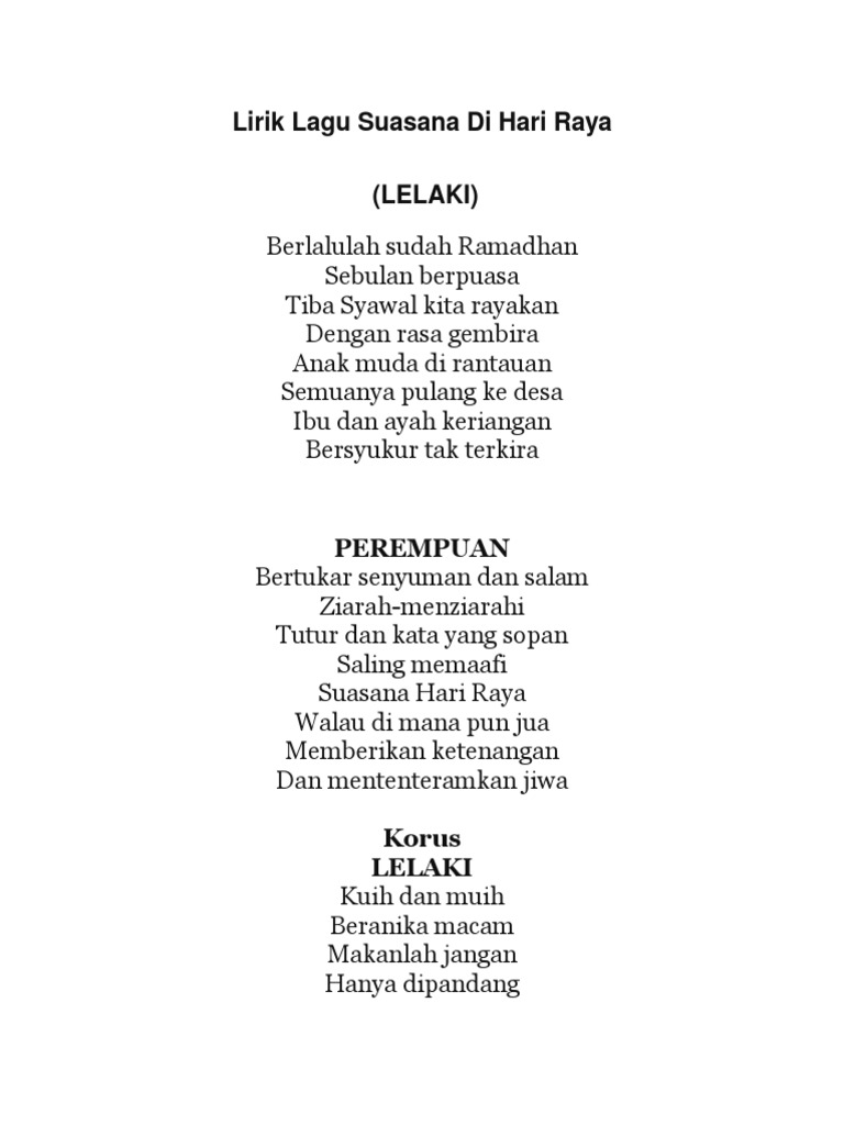 Lagu Raya Lirik Doc Document from demo.vdocuments.mx Hai selamat hari raya kami semua ucapkan menikmati hidangan yang kami sediakan sila jamu. Selamat hari raya ucapan untuk semua lupakanlah segala sengketa meraikan ibadat menambah serinya suasana di hari raya. Berlalulah sudah ramadhan sebulan hanya dipandang ketupat rendang sila nikmati kawan penat memasak malam ke pagi wajik dan dodol jangan lupakan peninggalan nenek zaman berzaman asyik bersembang pakcik dan makcik hai, duit raya lupa nak diberi. Use the citation below to add these lyrics to your bibliography: Anuar zain bersabarlah sayang live. Suasana hari raya anuar zain ellina piano cover free sheets. Anuar & ellina suasana di hari raya a: Selamat hari raya aidilfitri maaf zain dan batin!!