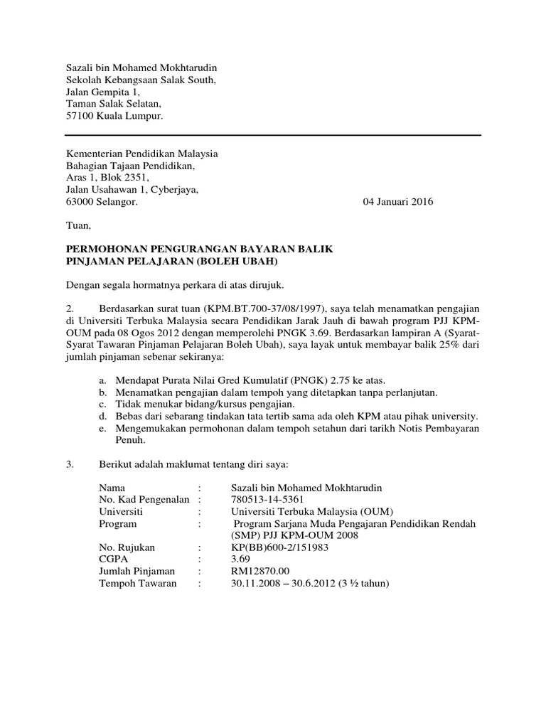Contoh surat tawaran belajar uitm.