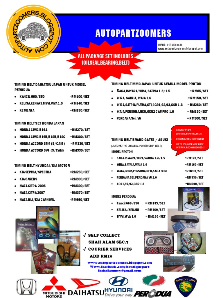 Harga Timing Belt Set Kereta Car Manufacturers Automotive Technologies from imgv2-1-f.scribdassets.com Dan keburukkan kos menggantikan timing belt agak mahal. It has excellent durability, even in. A wide variety of cover timing belt options are available to you, such as material, applicable industries, and warranty. Berikut merupakan info harga set timing belt kit untuk kereta jenama proton campro cps cfe dan perodua dvvt dohc. Set timing belt termasuk bearing dan oil seal serta warranty 100k km. A timing belt, timing chain, or cambelt is a part of an internal combustion engine that synchronizes the rotation of the crankshaft and the camshaft(s) so that the engine's valves open and close at the proper times during each cylinder's intake and exhaust strokes. Here are 5 symptoms of a bad timing belt and the average cost to replace it. Bemonoc gt2/2gt timing belt width 9mm rubber drive belt for 3d printer pack of 10meters.
